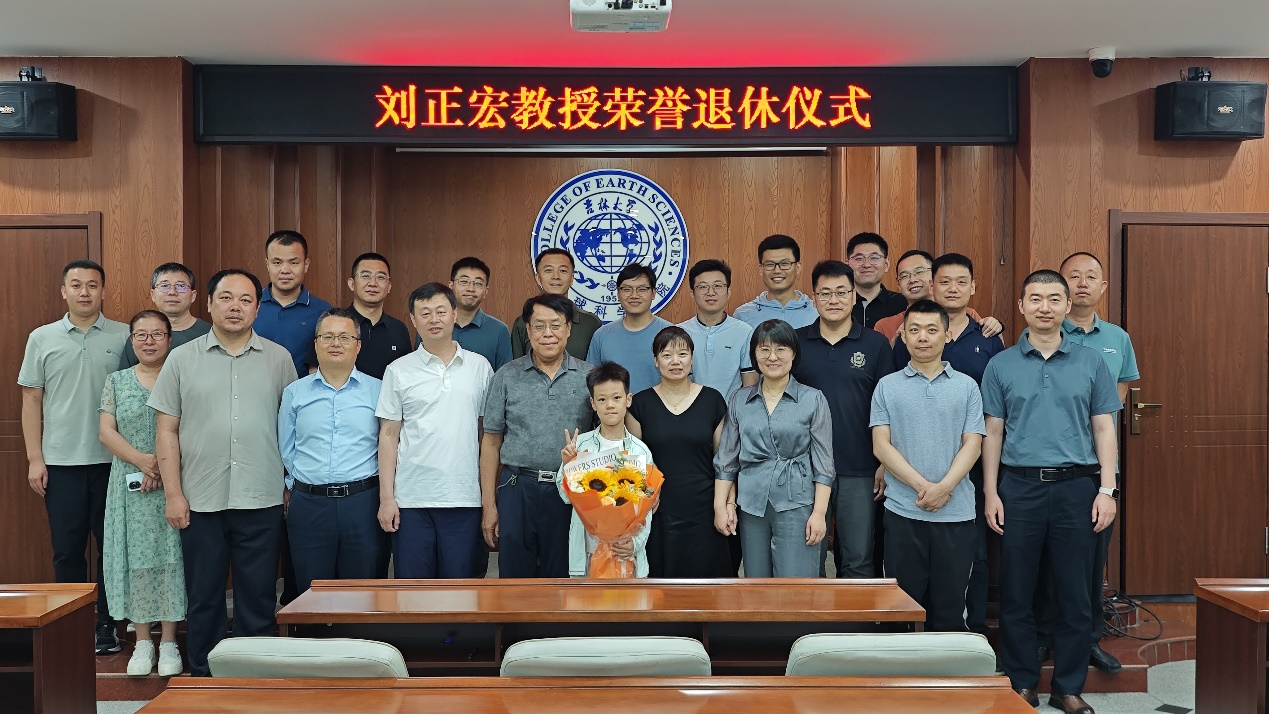 向刘正宏教授颁发了荣誉证书及纪念品。随后,构造地质学教研室的老师们和刘老师的学生们纷纷上前,与敬爱的刘老师合影留念。