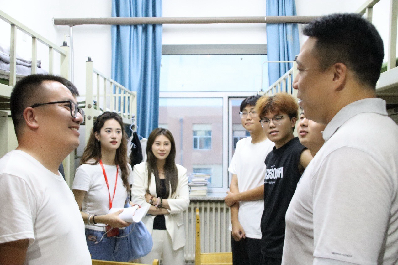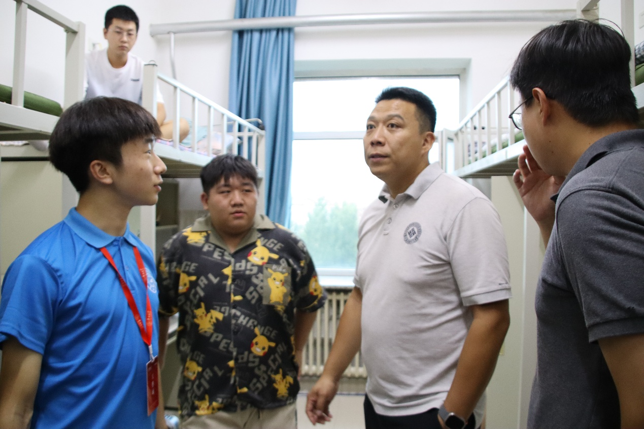 党委副书记李阳、学生工作办公室主任兼2025级辅导员韩旭、2024级辅导员宋梓豪、辅导员助理程肖琳共同前往新生宿舍北苑一公寓和南苑四公寓进行走访慰问,与新生及家长展开面对面交流,向同学们致以诚挚问候与新学期的美好期许,切实传递出欧洲足球联赛