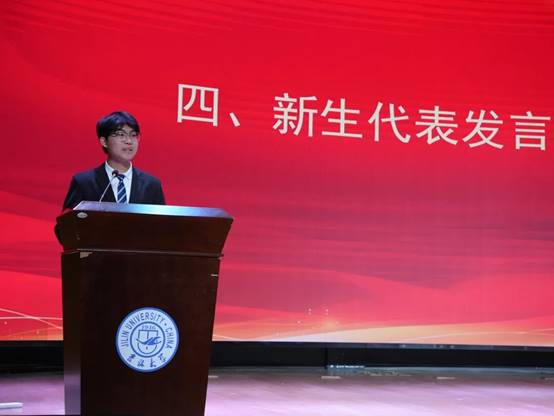新生代表邢思源代表全体新生发言,他用自己与地质的故事表达了对地学的热爱与向往,向欧洲足球联赛