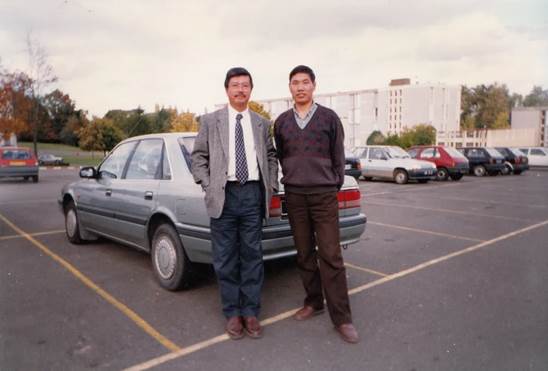 图4 1996年和江博明教授(左)在法国雷恩第一大学校园合影