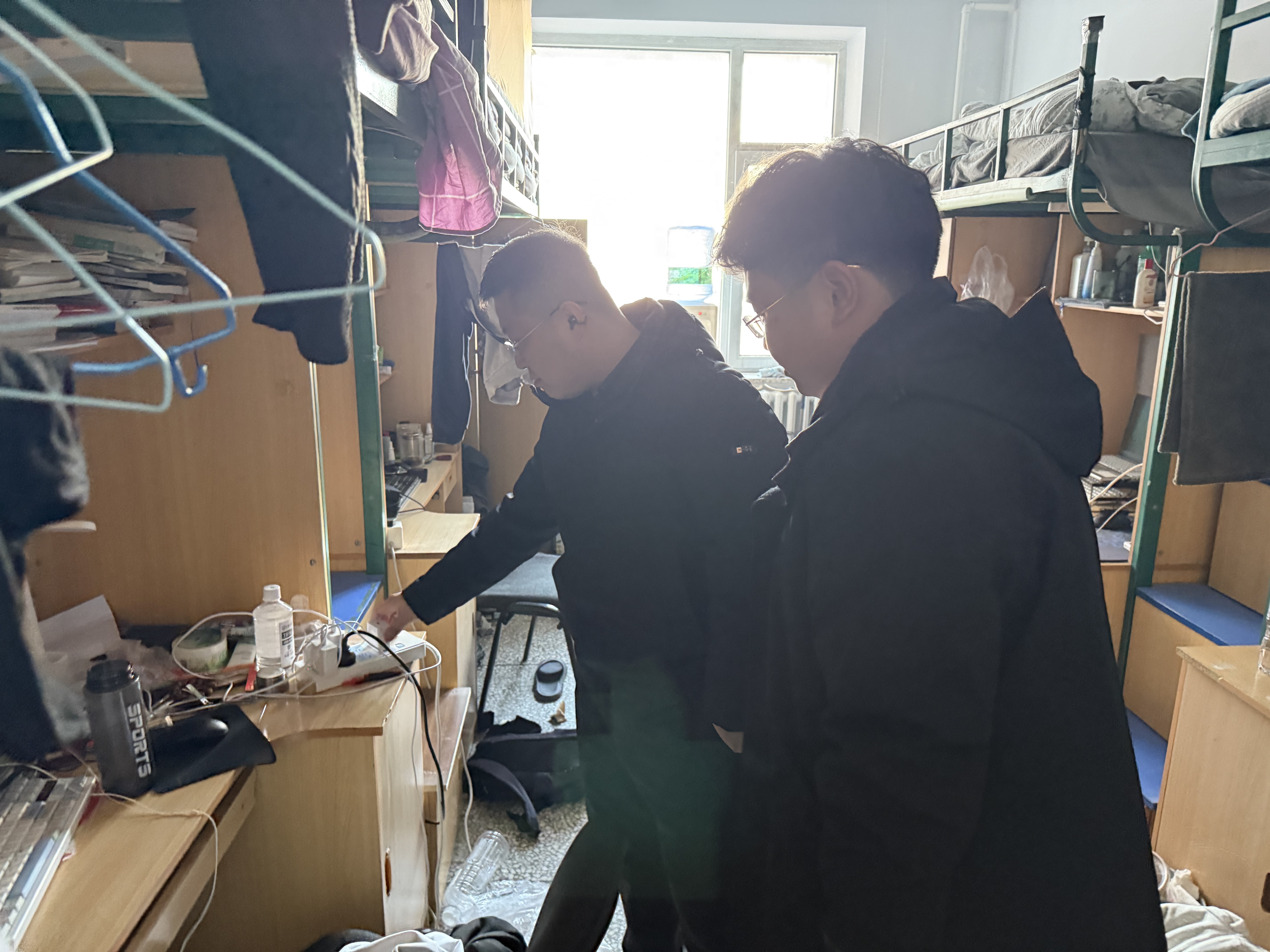 本次查寝也重点核查了学生公寓空调及电气系统改造完工情况。辅导员逐楼栋、逐寝室走访检查,绝大多数宿舍已完成建筑垃圾清理。针对个别寝室床帘等设施问题,工作人员逐一登记、点对点沟通整改,确保改造项目按标准落实,为学生新学期返校营造安全舒适的住宿环境。